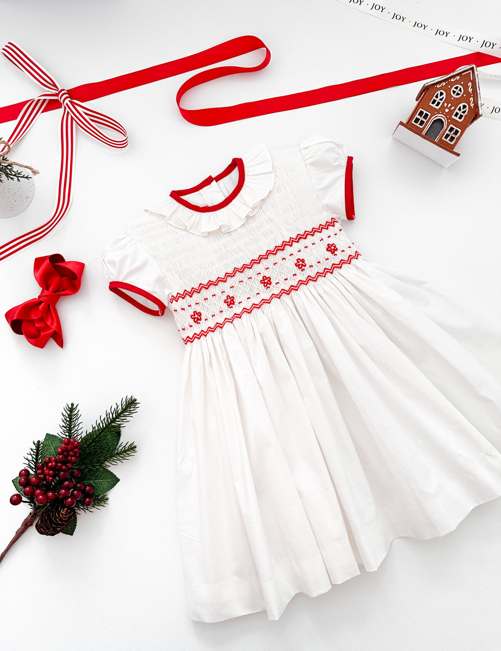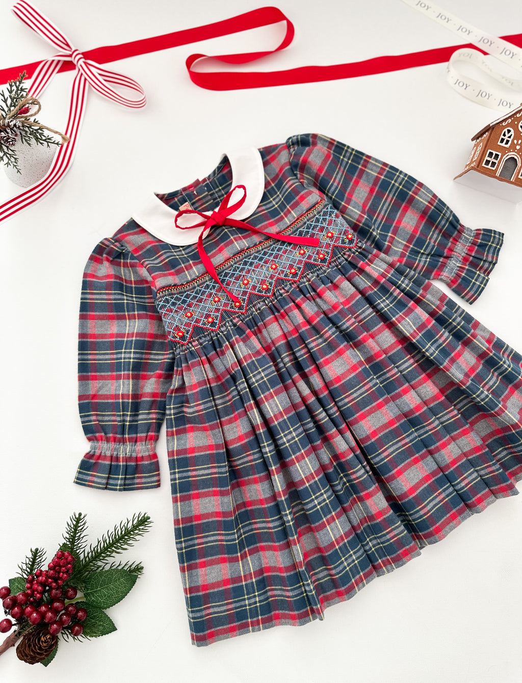 The hand smocked CAMILLE dress - Green (Holidays Edition)