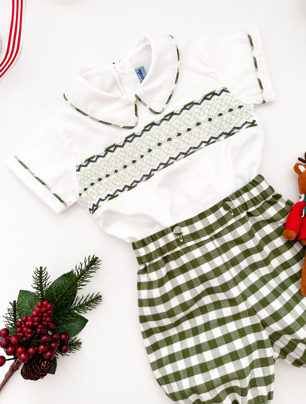 The hand smocked ADAM set - Green/white